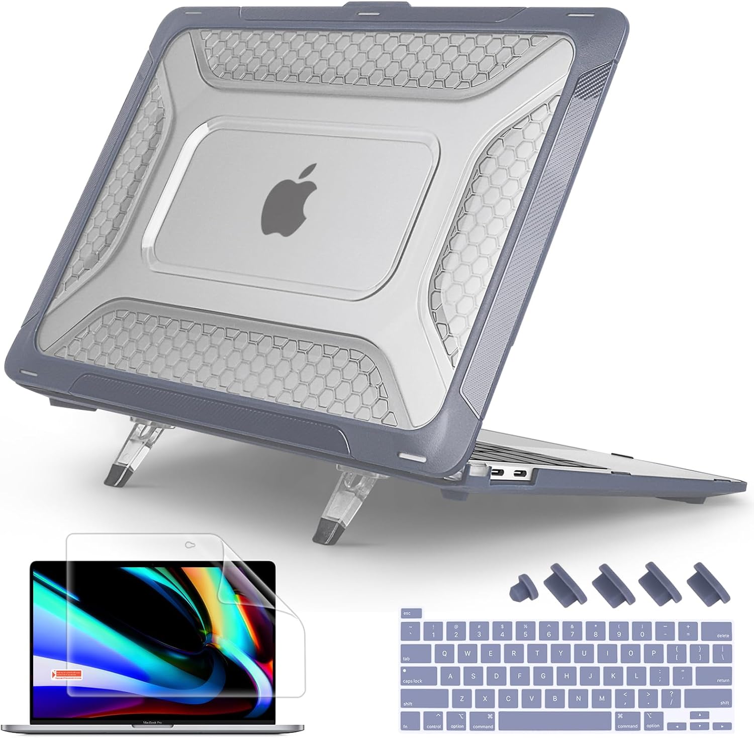 • Package Including keyboard cover, Dust plug and screen protector to protect your keyboard & screen against spills.