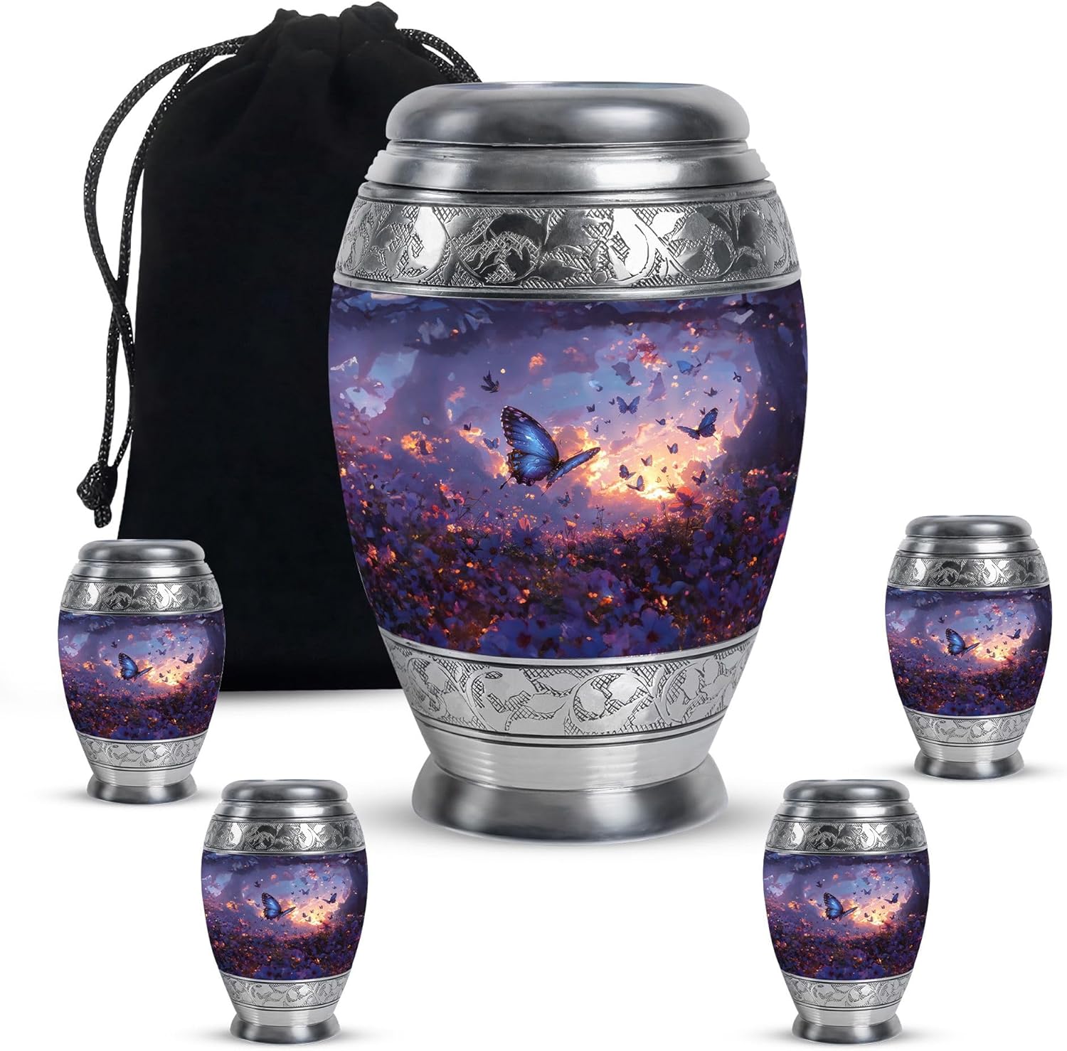 YATHABHISA URNS FOR HUMAN ASHES Urns serve as a timeless tribute to loved ones, reflecting the unique lives they lived. Our collection offers a diverse range of urns, available in various sizes and shapes to suit different preferences and needs. We are particularly proud of our meticulously crafted selection, which includes keepsake urns measuring 3 inches, perfect for holding a small, personal remembrance. These keepsake urns come in convenient options, either as a single pack or in a pack of four, allowing families to share and cherish these memories. For those seeking a more traditional size, we offer large urns at 10 inches, which can accommodate a full set of ashes. We also offer combo of urns, featuring large urn paired with matching keepsake urn. Every urn in our collection is designed with care and attention to detail, ensuring that each piece is not only a receptacle for ashes but also a beautiful work of art. Our urns come in multiple designs, each with its own distinctive style, ensuring that you can find the perfect expression of love and remembrance for your beloved. We take great pride in offering these choices, helping you honor your loved one's memory in the most fitting way.